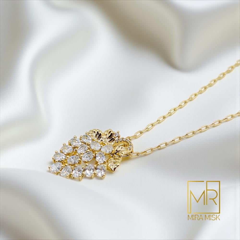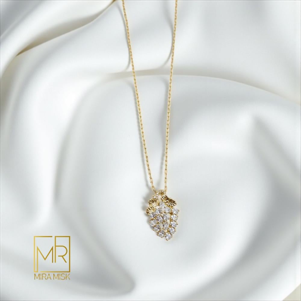 تعليقة كارمن تستوحي جمالها من تفاصيل الطبيعة؛ عنقود رقيق تتناثر عليه أحجار الزركون لتمنحك بريقًا ملفتًا دون مبالغة. صُنعت من تنغستون كوري أصلي ومطعّمة بطلاء لون الذهب عيار 18 للمحافظة على اللمعان مع استخدام يومي. سلسلة قابلة للتعديل لتناسب تنسيقاتك، وتظهر رائعة منفردة أو مع طبقات سلاسل رفيعة
