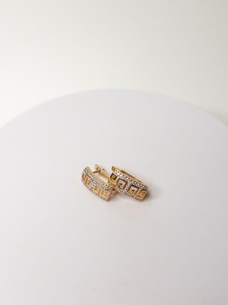 ارتقي بإطلالتك مع حلق “غادة”؛ تصميم هووب نصفـي يجمع بين فخامة النقش الإغريقي الكلاسيكي ولمعة الزركون المرصّع على الحواف. طلاء ذهب 21 قيراط مدعوم بطبقة تنغستون كورية أصلية ليقاوم البهتان ويحافظ على بريقه مع الاستخدام اليومي. قفل المفصل يمنحك ثباتًا وراحةً طوال اليوم—قطعة أنيقة للهدايا وللإطلالات العصرية