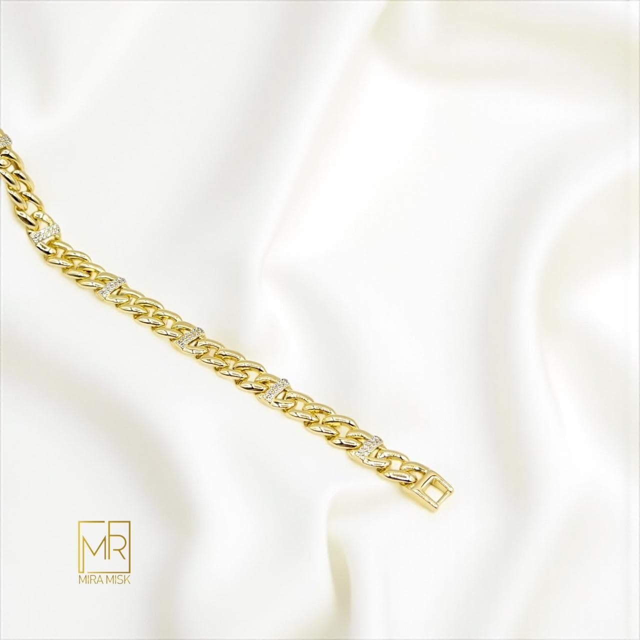 • التصميم: روابط جنزير مع فواصل مرصّعة بزركون أبيض لماع